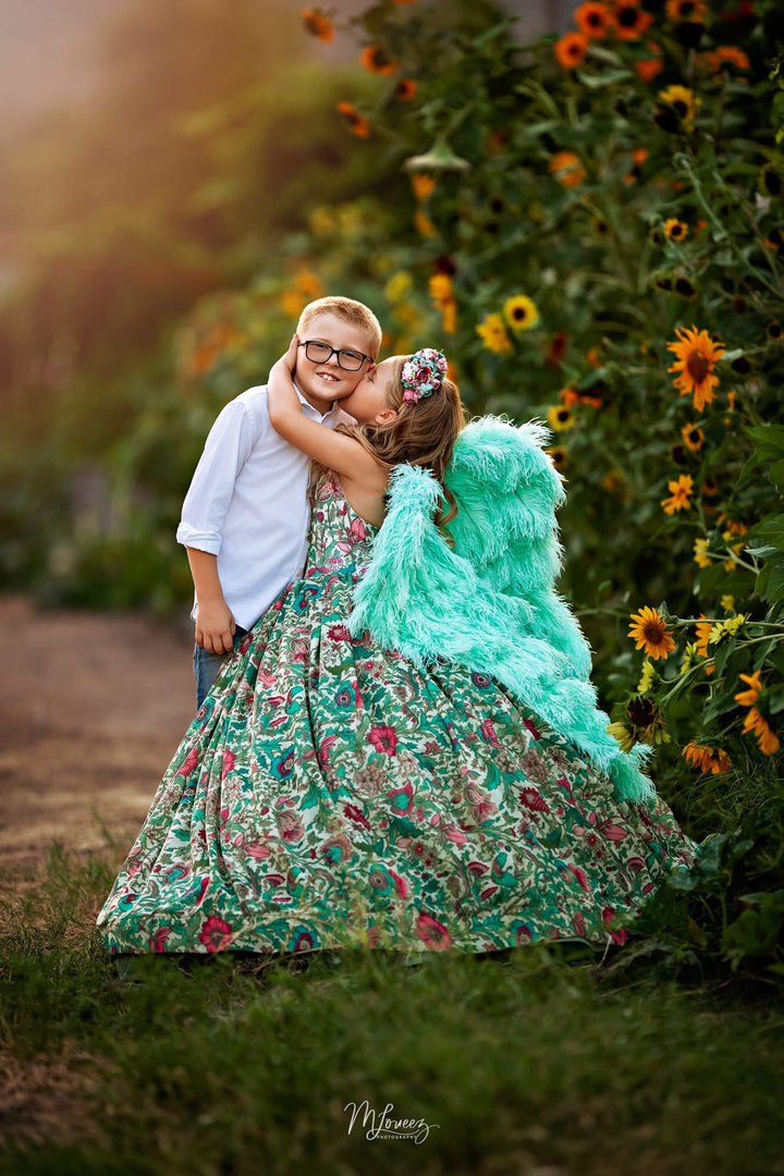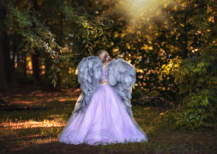 When wings are ordered, Kaylynne at Ela Couture will message you to discuss your wing color options! Wings are 25" in length from top to bottom, as shown in the attached photos, they are suitable in size for children AND adults!! (These wings are normally $400, but Ela Couture is offering a special to Little Dreamers customers when they purchase a gown from us! Isn't that such a sweet deal?!?!?)