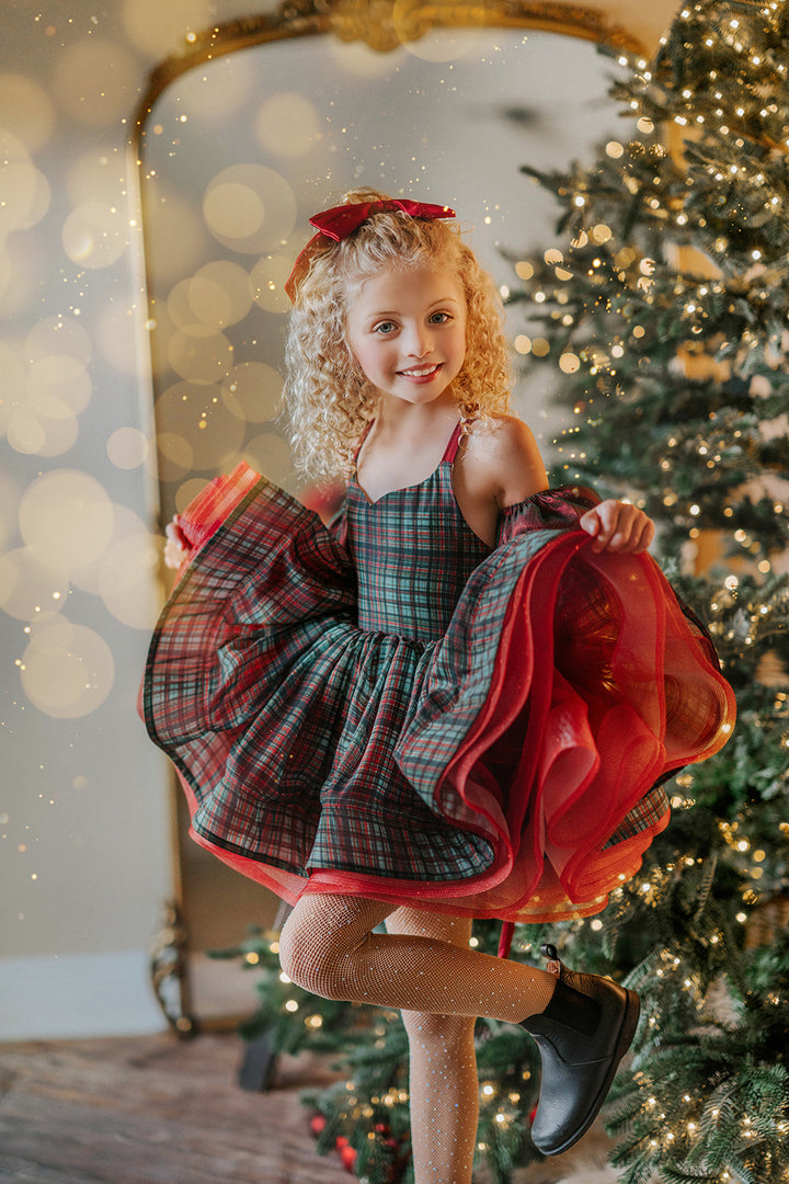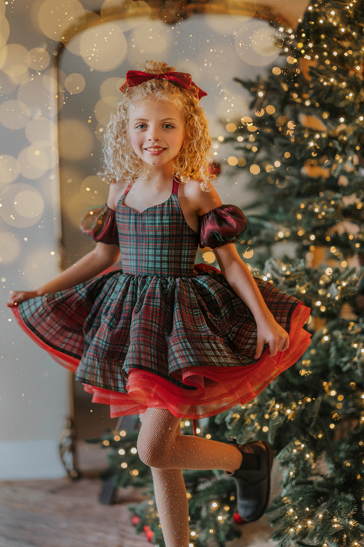 Made with a super soft, beautiful chiffon, with a full skirt hemmed with horsehair braid, over 4 layers of green glitter tulle.