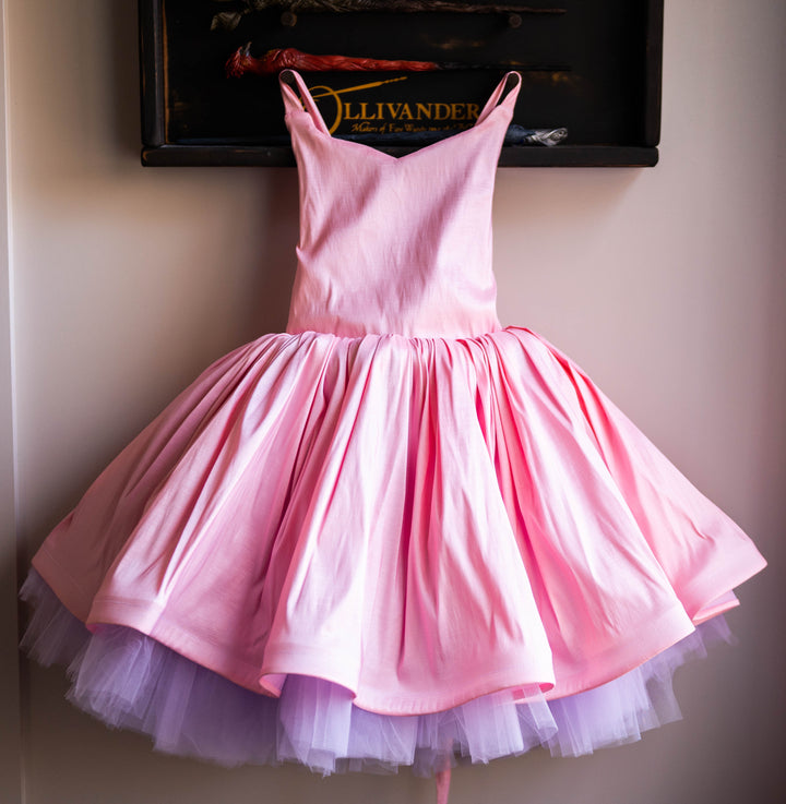 Glitter and Pastel Easter Eggs: REVERSIBLE: Size 8, fits 6-10 +-Chiffon Bodice in pretty pastel pink and lavender Easter Egg design-Lavender tutu skirt with a top layer of gorgeous glitter lace-REVERSIBLE to solid Light Pink Taffeta, "Hadley" style >>> Poof...