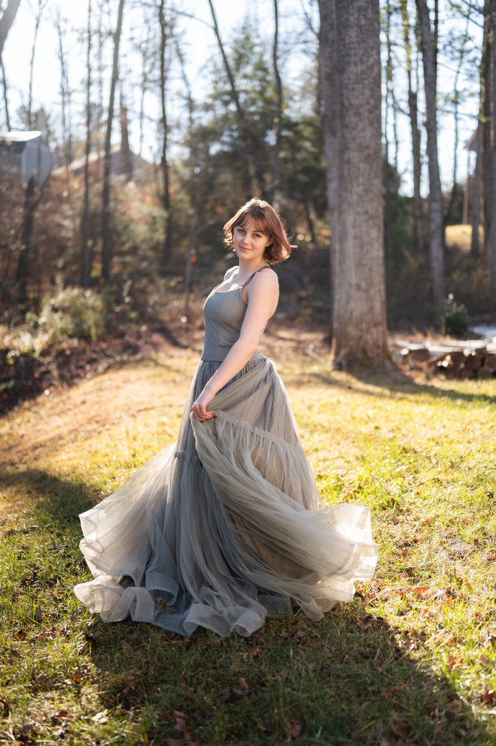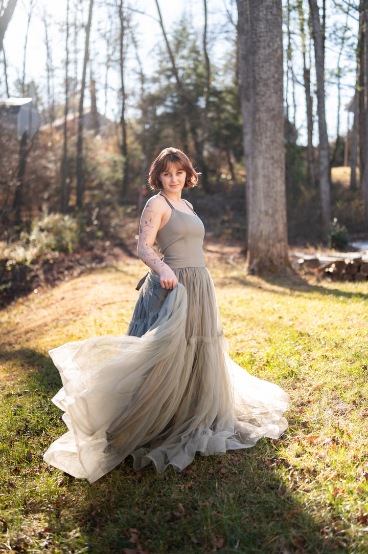This is the same style skirt as the Aubergine dress as shown in photos 2-4! Such a gorgeous staple piece!The skirt is tiered with the top layer being 8 yards and the lower layer being a full 16 yards!!!!! Fantastic...