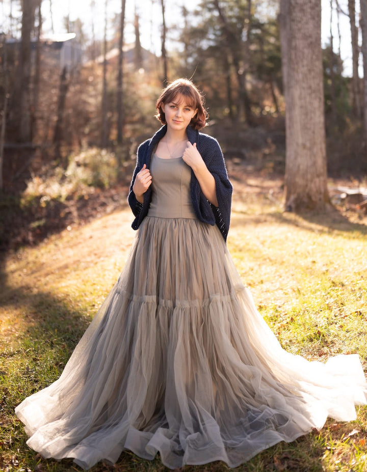 This looks amazing with a hoop skirt, which can be purchased on Amazon for $20. Please see the additional pictures of the original "Aubergine" dress to see this skirt style in use and to see how full it is!!! It's TONS of yardage!!