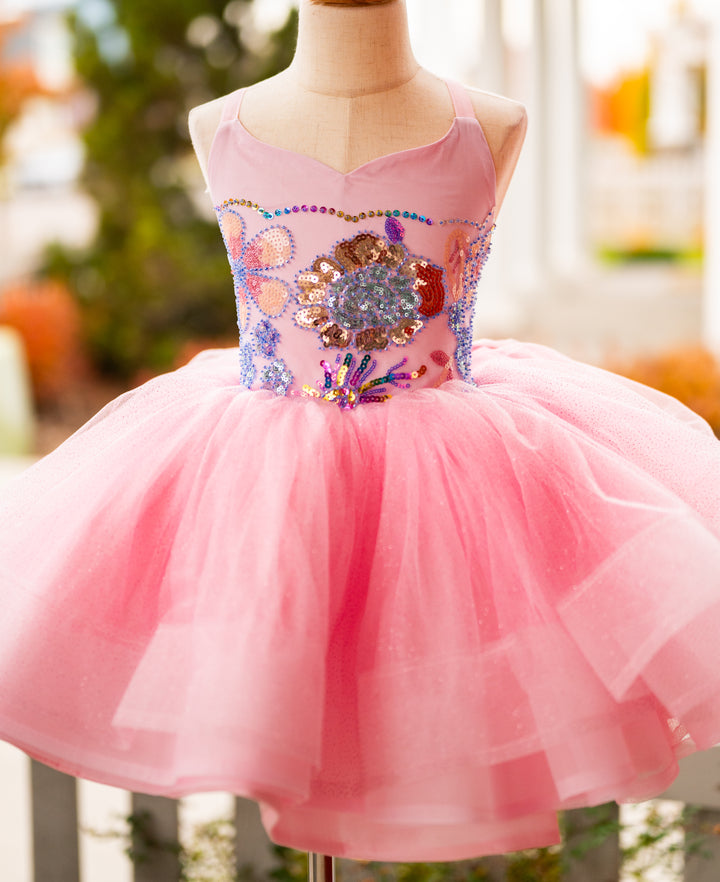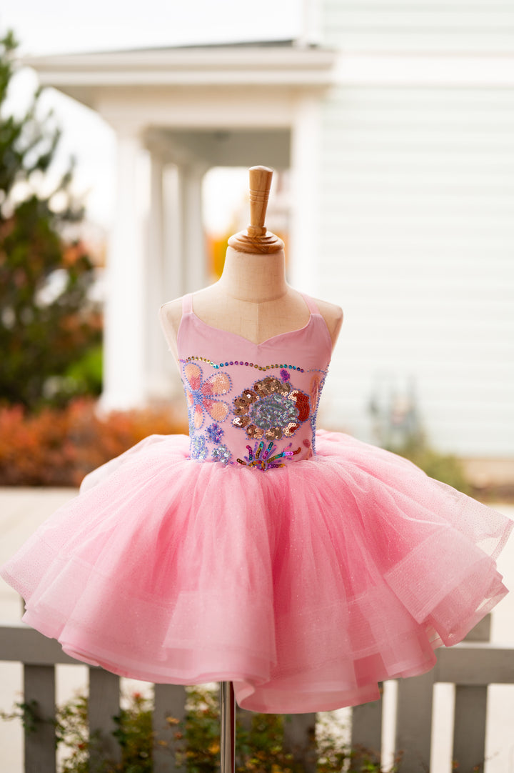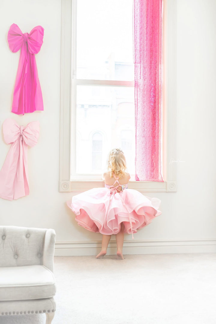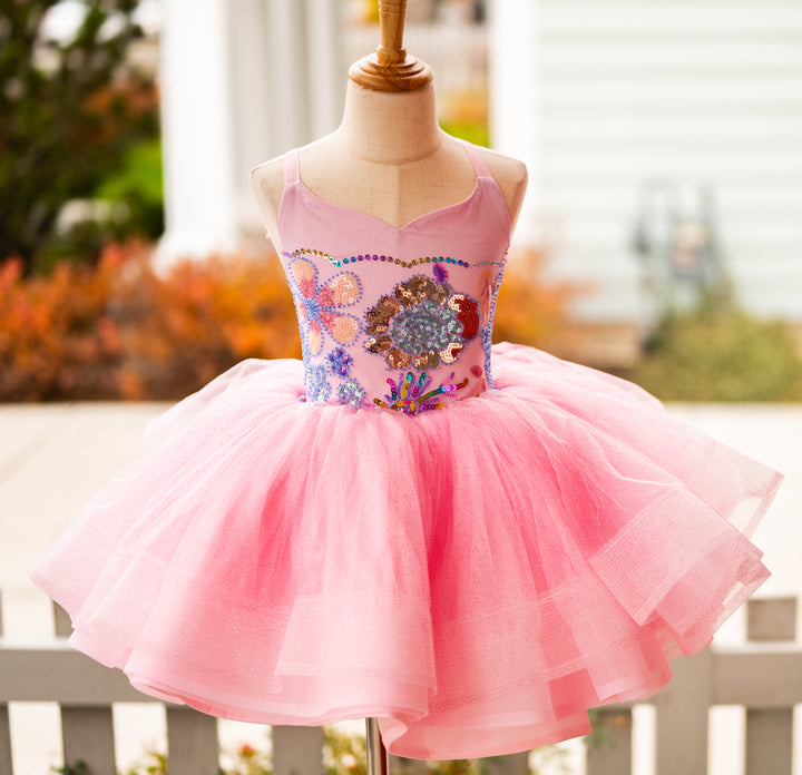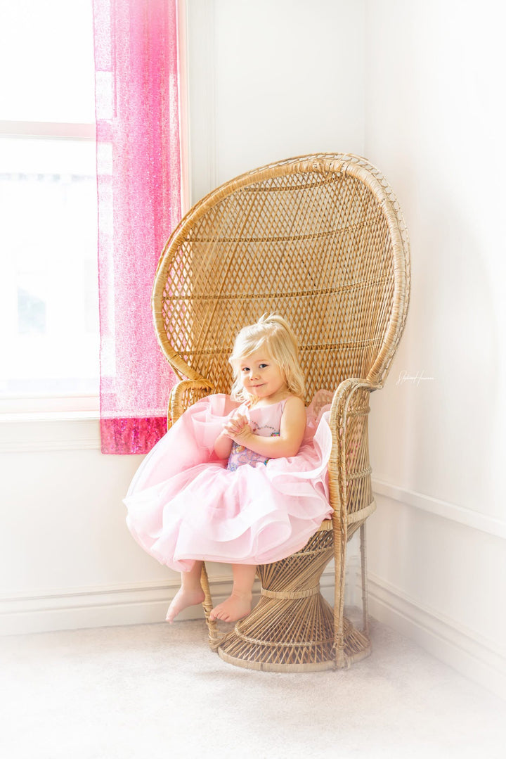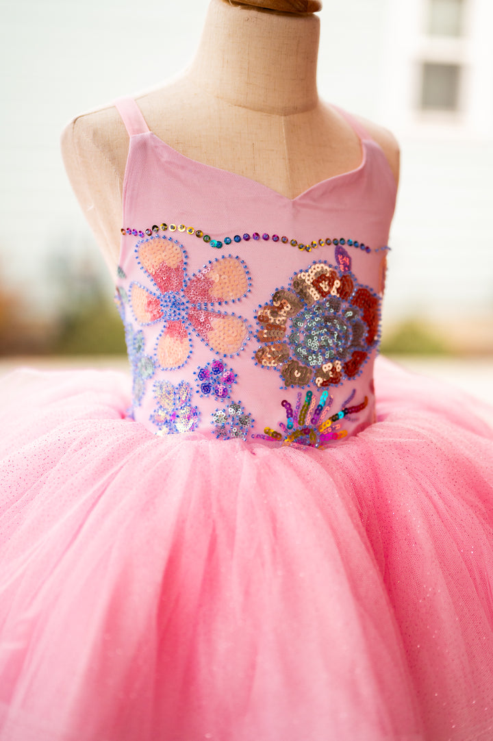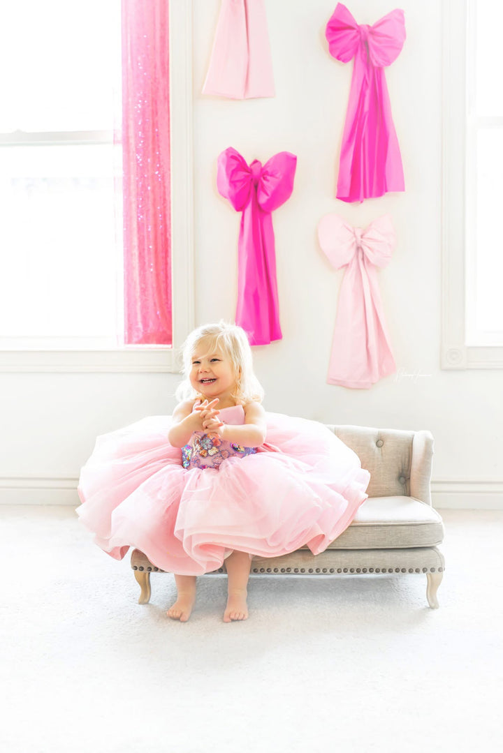 The Pink Sparkle Princess Shortie is PERFECT for all the little princesses in your world, whether it's a birthday shoot, a styled glam session, or any type of bubbles, glitter, fairies, or princesses!!!! The bodice is beaded and sequined in sweet pastel shades over pink, and the skirt is a glitter layer for some added sparkle, over layers of soft mesh over taffeta, all layers with horsehair hem! This little gem would also be BEAUTIFUL for Easter portraits!!!