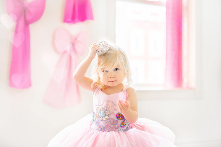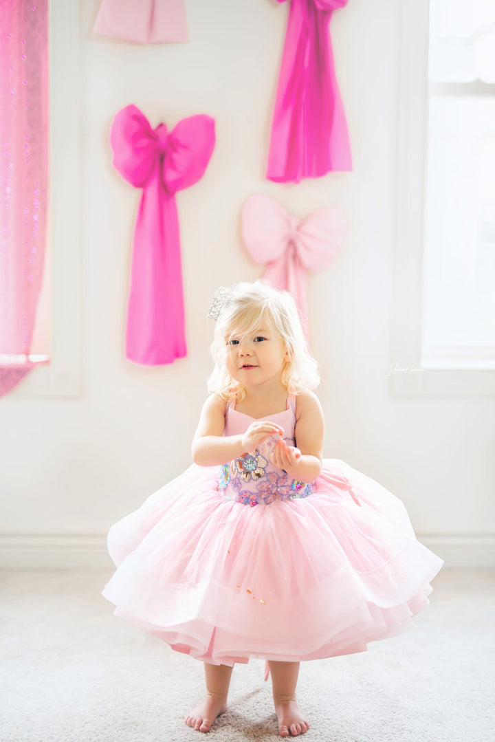The Pink Sparkle Princess Shortie is PERFECT for all the little princesses in your world, whether it's a birthday shoot, a styled glam session, or any type of bubbles, glitter, fairies, or princesses!!!! The bodice is beaded and sequined in...