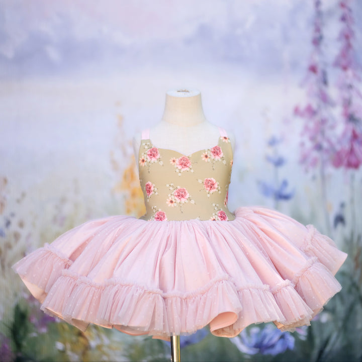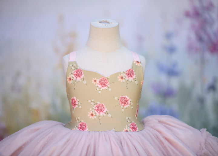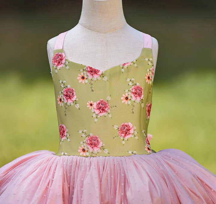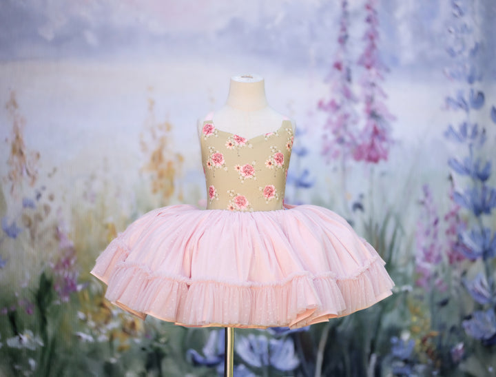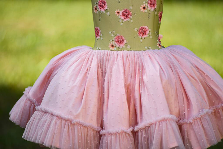 READY to SHIP: The 'Roses and Ruffles' in Pink and Green Shortie Dress