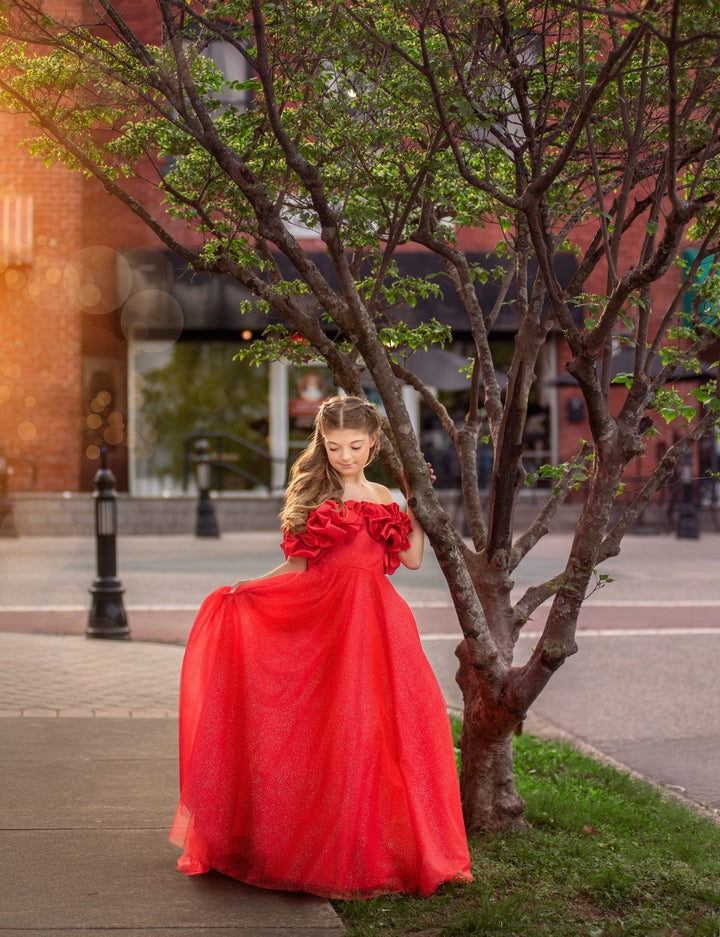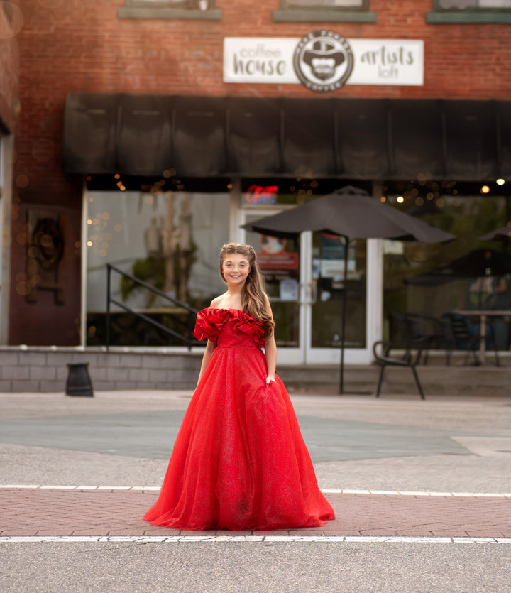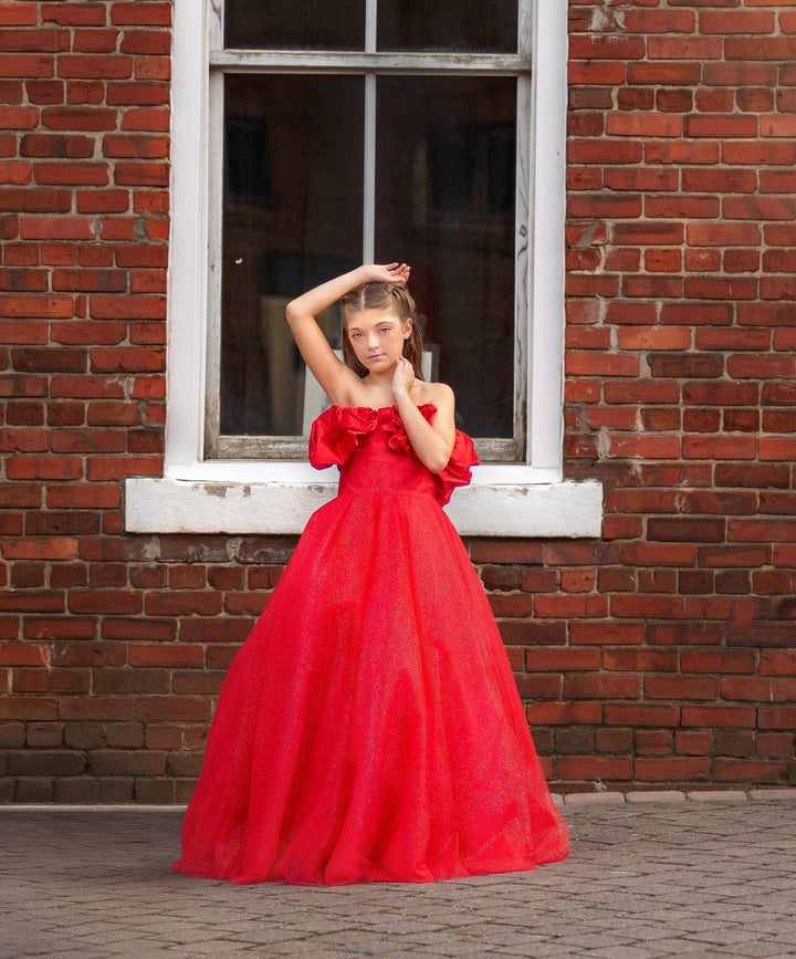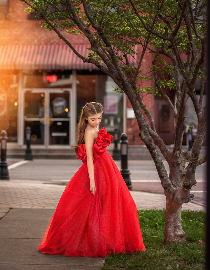 This is a retired rental and may have wear and tear, not visible in photos though.Accessories (i.e. headbands, headpieces, wings, shoes, hoop skirt, sashes) are NOT included.The Rose Gown: This was an experiment in a different pattern! She turned out...