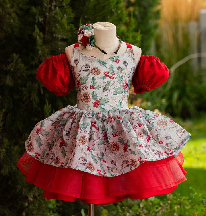 RTS Sale: Size 6, fits 4-8: 'Holly Berries and Thistle'