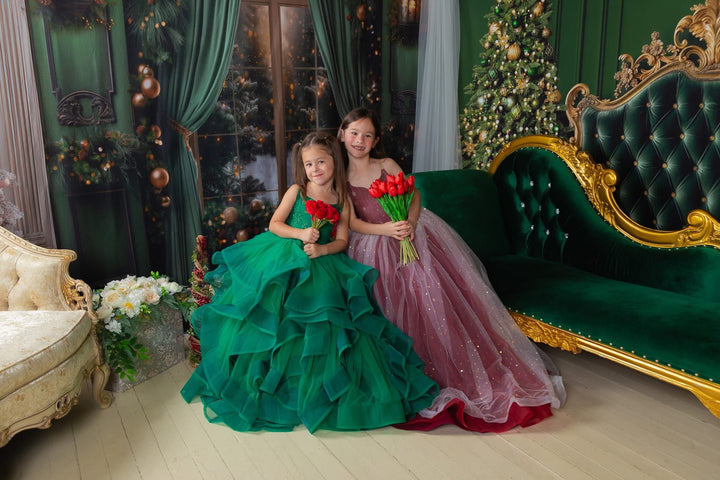 The 'Naomi' Gown: Made as a match (though not identical, they have different skirt styles) to the Natalia Gown... Both size 5's, these are a perfect TWIN set or BEST FRIEND set!!!