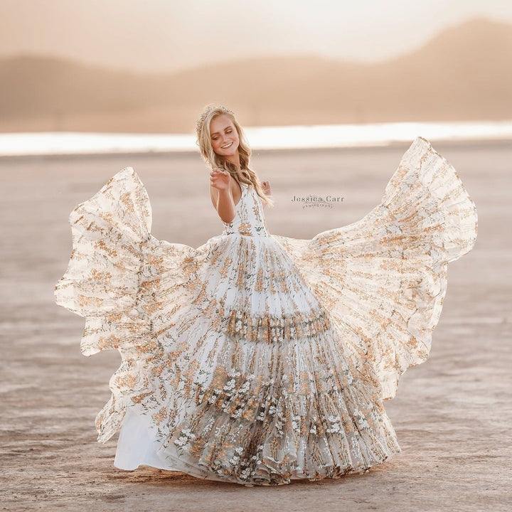 The 'Falling for Fall' Gown: Everyone's favorite Fall Floral...I had to bring it back one last time in a big size for all the momma's that want to match their little for Fall family portraits...This skirt is SUPER full, with 16 YARDS of fabric in the bottom tier. All layers with horsehair hem for that structured wavy look we love. This can be worn with or without a hoop skirt, just depending on your preference.